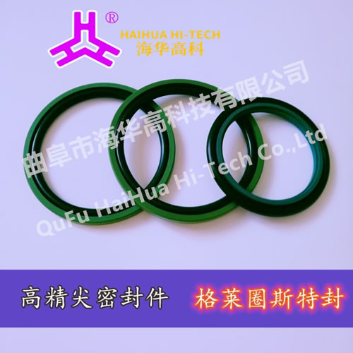 可分為孔用格萊圈和軸用格萊圈。由一個(gè)抗磨的填充聚四氟乙烯PTFE環(huán)和O型圈組成,O型圈提供預(yù)緊力,可對(duì)PTFE方形環(huán)的磨損起補(bǔ)償作用。PTFE摩擦系數(shù)小,動(dòng)靜摩擦系數(shù)相近。適用于高低速往復(fù)運(yùn)動(dòng)及高壓系統(tǒng)的油缸活塞桿密封,具有雙向密封效果。一般與導(dǎo)向環(huán)配套使用?讖叫∮讦40的規(guī)格,應(yīng)采用分體式溝槽。