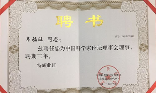 2017年九月韋福旺先生參加第十四屆中國科學(xué)家論壇,并被聘為論壇理事會(huì)理事。